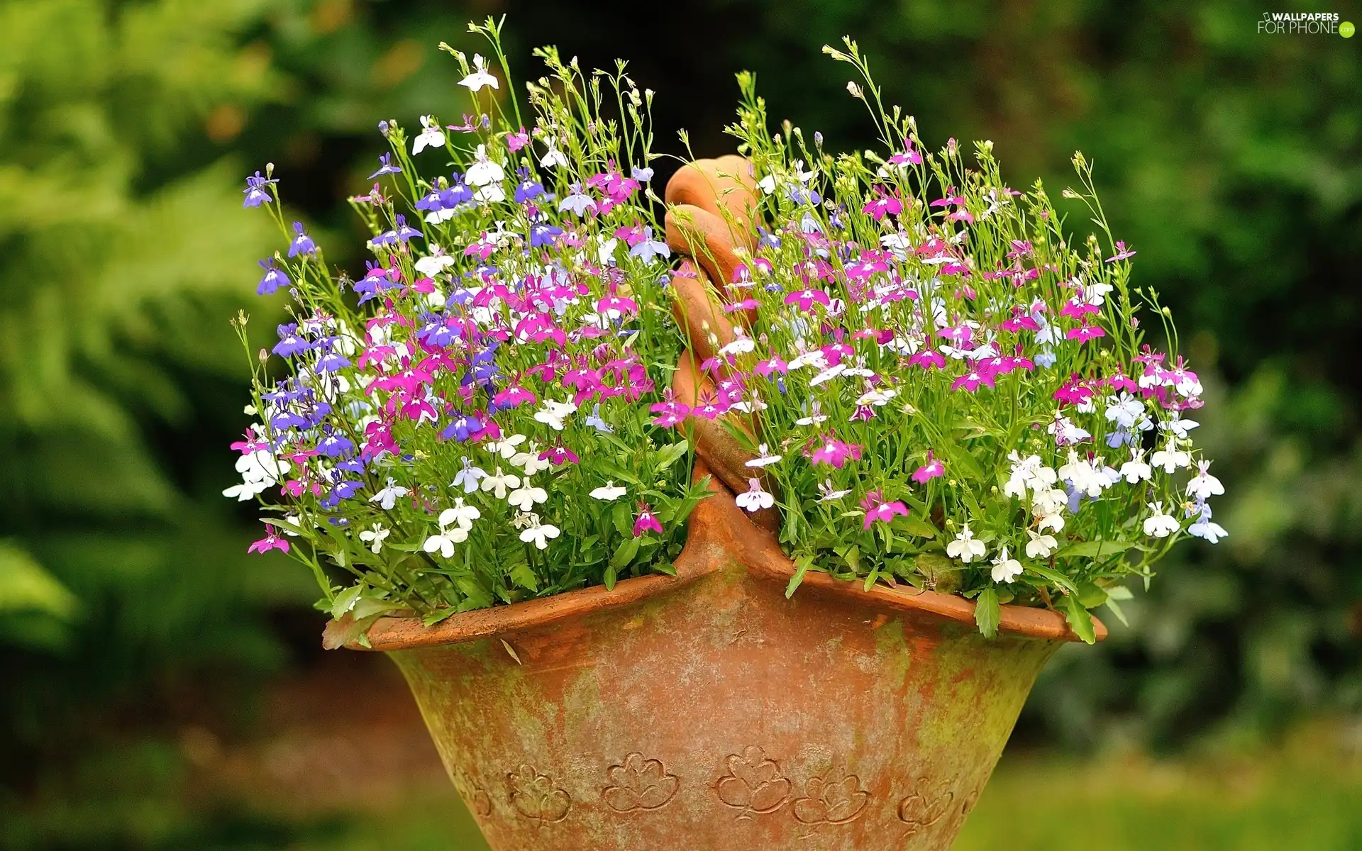 basket, lobelia, earthen