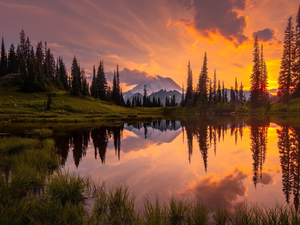 Boat, lake, Sunrise