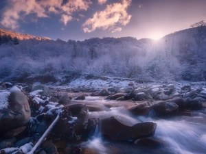 trees, snow, Plants, clouds, winter, viewes, Snowy
