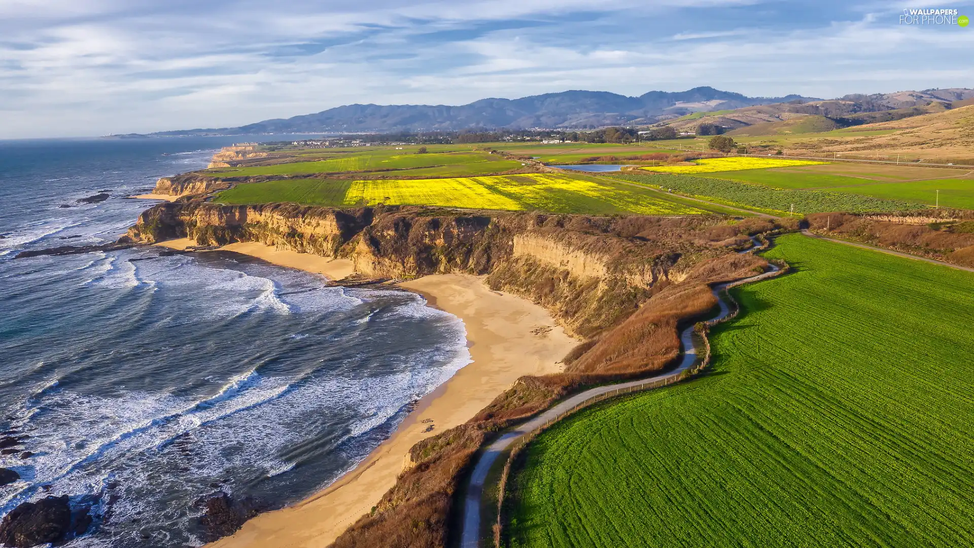 sea, Cliffs, Way, Coast, Beaches, field, Mountains