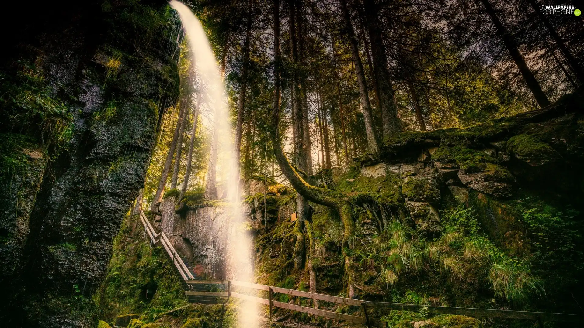 forest, Germany, viewes, waterfall, trees, Baden-Württemberg