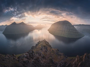 reflection, graphics, hydrangeas, water, Flowers