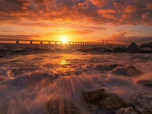 Bush, Peonies, viewes, grass, Flowers, trees, clouds