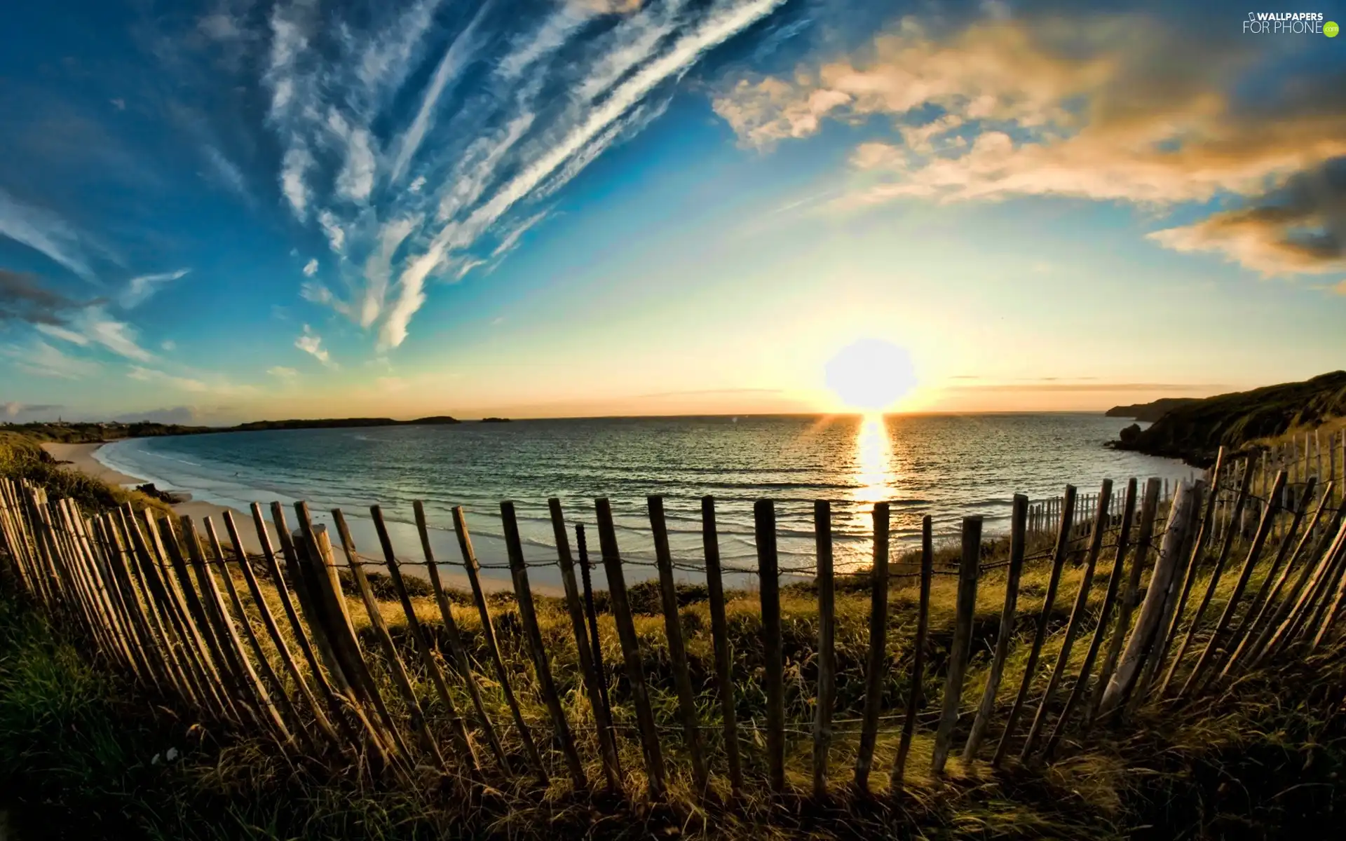 horizon, fence, sea