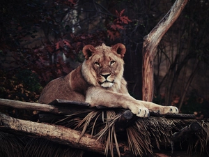 Mountains, River, viewes, trees, clouds, lightning, lightning, green, grass, Storm, Sky