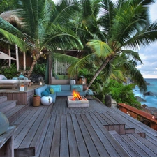 Boats, Palms, west, Beaches, sea, Mountains, sun