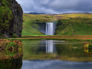 trees, Snowy, Spruces, viewes, Meadow, The United States, Washington State, Stratovolcano Mount Rainier, Mountains, Mount Rainier National Park, Flowers