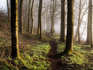 viewes, grass, green ones, trees, lake