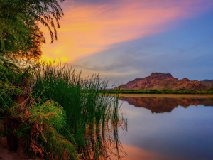 Palms, Aloha State Hawaje, clouds, Rescue Tower, Great Sunsets, sea
