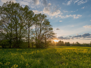 viewes, Great Sunsets, Sky, clouds, Way, trees