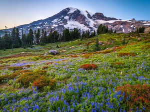 State of California, The United States, Yosemite National Park, Mountains, viewes, Mirror Lake, rocks, trees, Half Dome Peak