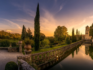 Old English Sheepdog, Australian Shepherd, railing, Border Collie, stone, Dogs, four, Retriever Nova Scotia