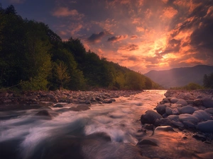 Stones, leafless, viewes, Leaf, Way, forest, trees, autumn, fallen, rocks