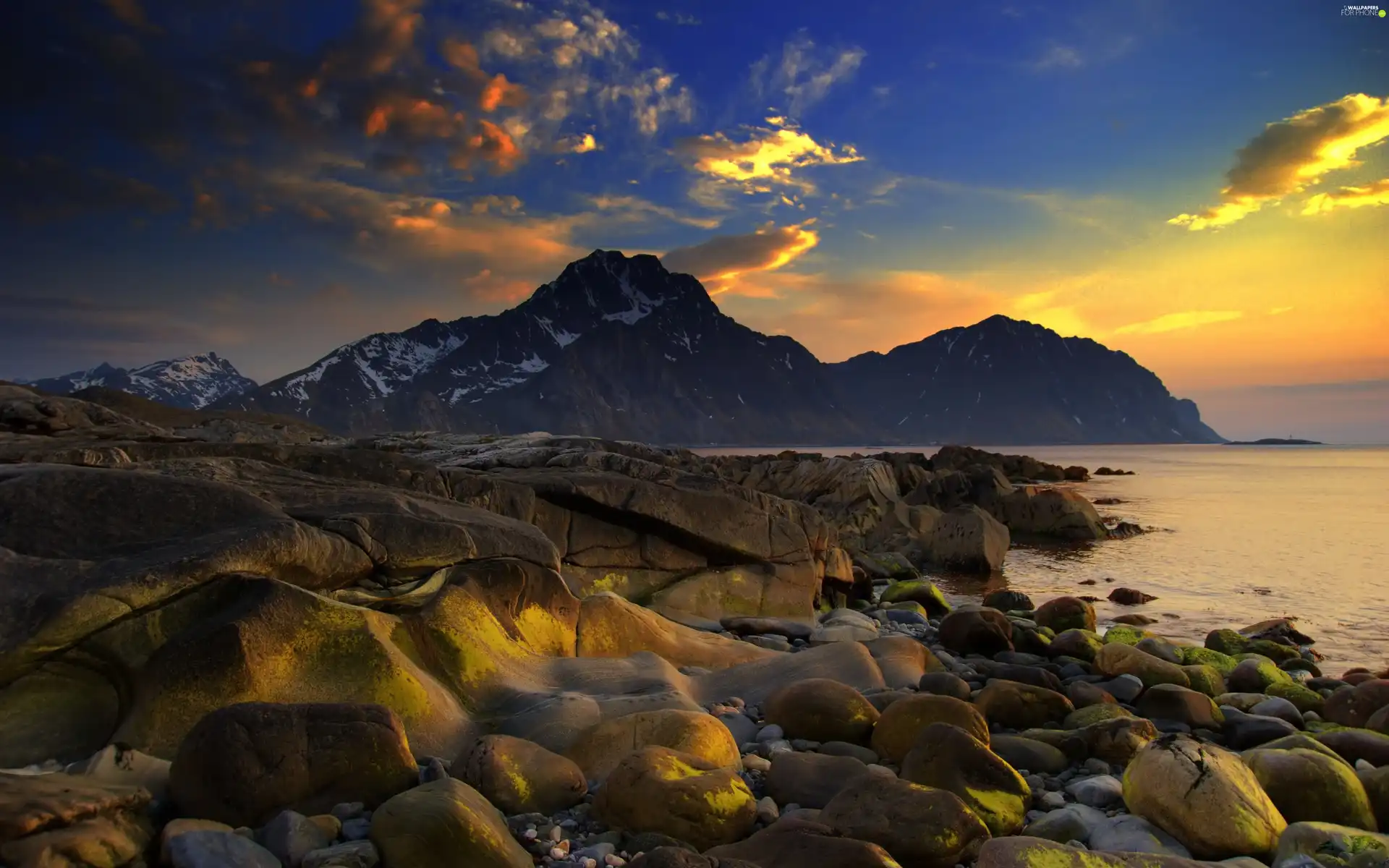 stony, coast, sun, rocks, west