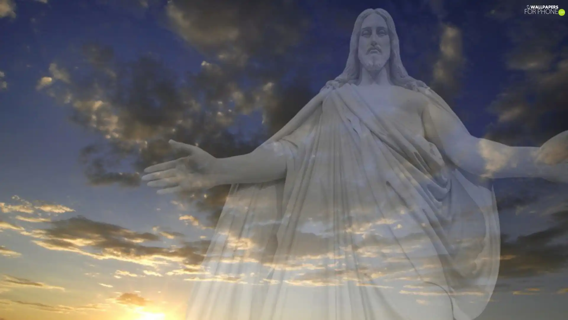 Jesus, west, sun, clouds