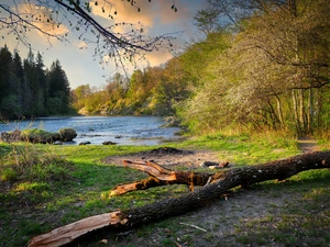 trees, birch-tree, heath, Heather ordinary, Great Sunsets