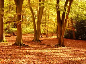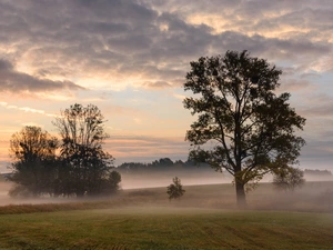 viewes, forest, clouds, trees, Mountains, lake, autumn