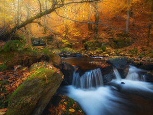 trees, River, rays of the Sun, grass, viewes, leafless