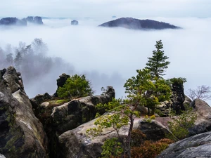 trees, autumn, sunny, light breaking through sky, viewes, forest