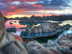 forest, trees, traces, viewes, winter, snow, Sunrise