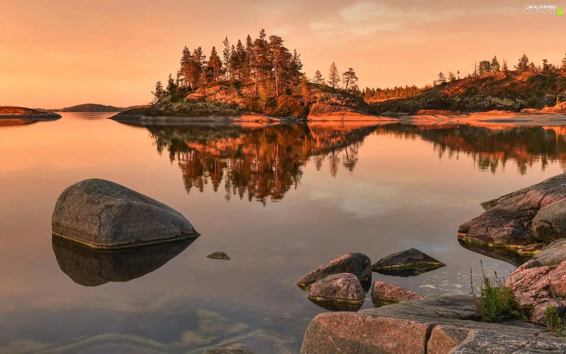 rocks, Russia, trees, viewes, Islets, Lake Ladoga