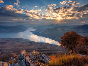 waterfall, forest, rocks, bridge, Leaf, autumn, viewes, fallen, trees